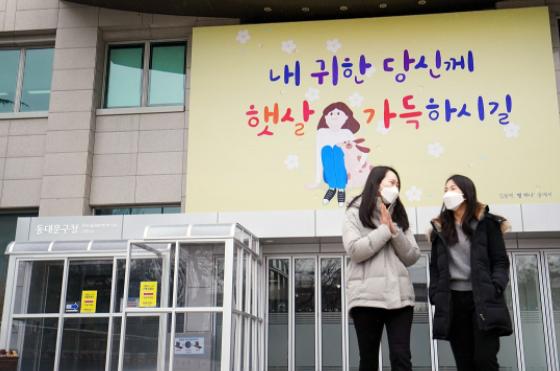 동대문구가 봄을 맞이하여 동대문구청 정문 상단에 희망글판을 새단장했다.
