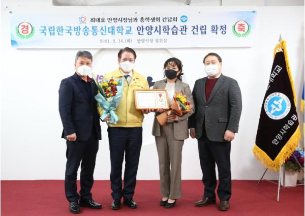 최대호 안양시장이 16일 안태호 방송대총학생회을 비롯한 일행의 예방을 받아 학습관 건립에 기여한 공로로 감사패를 받았다고 안양시가 밝혔다.
