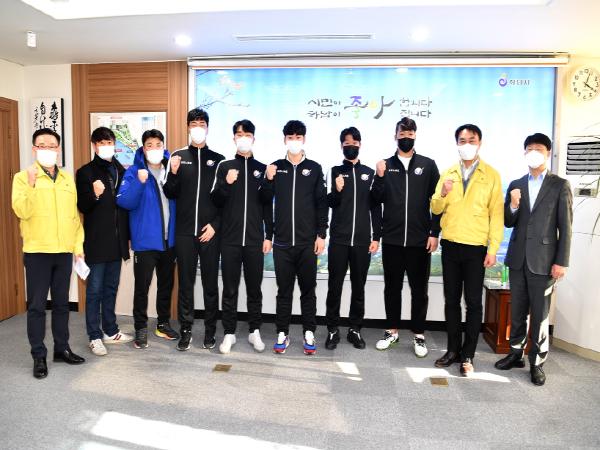 김상호 시장은 “코로나19 여파로 훈련에 어려움을 겪으면서도 마지막까지 최선을 다한 선수단이 자랑스럽다”며 “앞으로도 우리 선수들에게 힘이 되어줄 수 있도록 응원의 목소리를 보내겠다”고 격려했다.