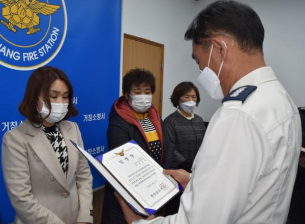 한편, 거창소방서 의용소방대연합회(남성회장 정칠균, 여성회장 전숙향)는 지난 설 연휴 특별경계근무 기간 중 거창군 마리면 의용소방대원이 화재예방 순찰 중 주택화재를 발견하고 인명대피 유도와 초기 진압활동으로 지역 주민으로 부터 호평을 받은 바 있다.