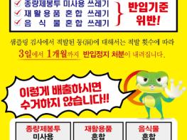 아울러 구 홈페이지를 비롯해 네이버카페 및 인스타그램 등 SNS를 통해 올바른 쓰레기 배출을 적극적으로 알리고 반입정지 관련 홍보물을 16,000부 추가로 제작해 배부할 예정이다.