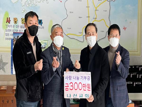 나산교회는 지난해에도 나산면지역사회보장협의체에 500만원의 후원금을 전달했다.