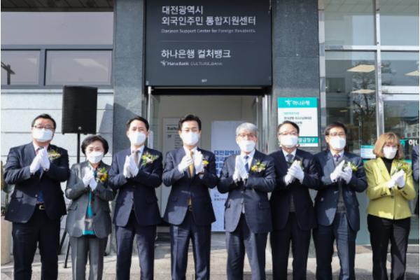 개소식은 이날 오전 10시 정동 소재 하나은행 대전역전지점 2층 외국인주민 통합지원센터에서 허태정 대전시장과 권중순 대전시의회 의장, 유미 사회서비스원 대표이사, 외국인 시정참여회의 위원 등이 참석한 가운데 현판제막식 등 주요행사가 개최됐다.
