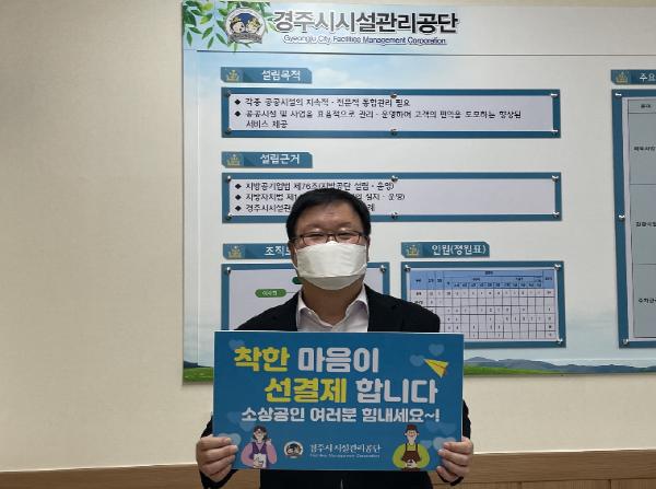 경주시시설관리공단(이사장 김기열)에서 신종 코로나바이러스 감염증(코로나19)의 장기화로 어려움을 겪고 있는 지역 소상공인의 어려움을 함께 극복하고 위축된 지역 상권을 살리기 위해 ‘착한 선결제·선구매 캠페인’에 동참한다고 18일 밝혔다.