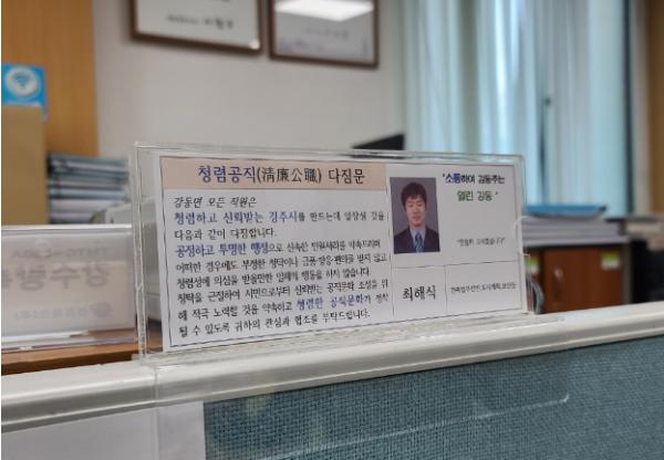 경주시 강동면행정복지센터(면장 예병길)에서 청렴한 경주시 만들기에 앞장서고 있다.