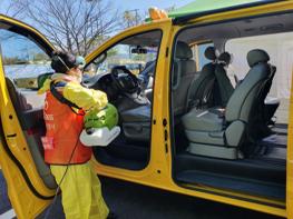 방역은 무자극, 친환경 인증을 받은 안전한 약품을 사용하여 차량의 주요 접촉부분인 핸들, 손잡이 등을 문질러 닦은 후 초미립자분무기 살균으로 진행된다.