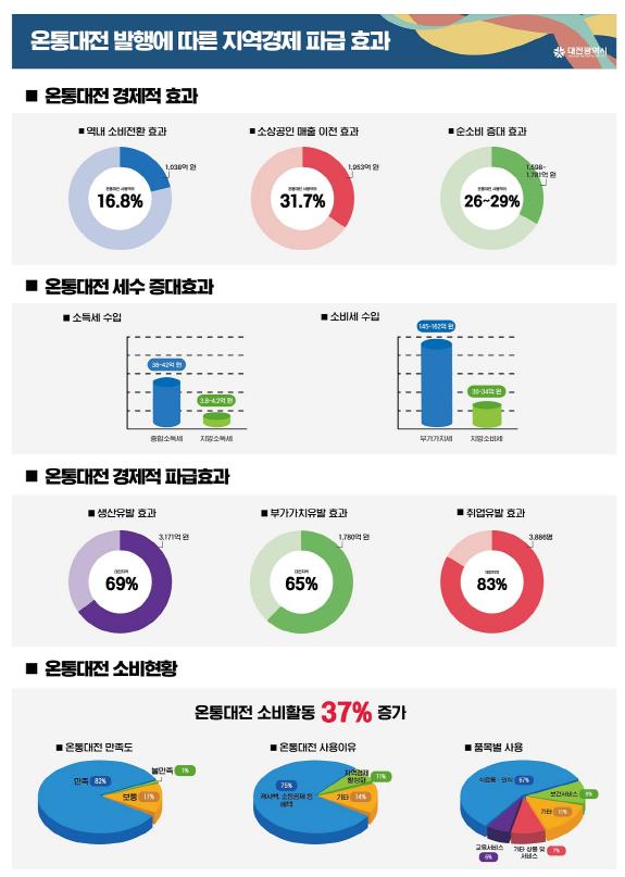 또한, 온통대전 사용액의 26~29%는 온통대전의 순소비의 증대분으로, 온통대전 발행으로 인한 소비진작 효과로 분석됐다.