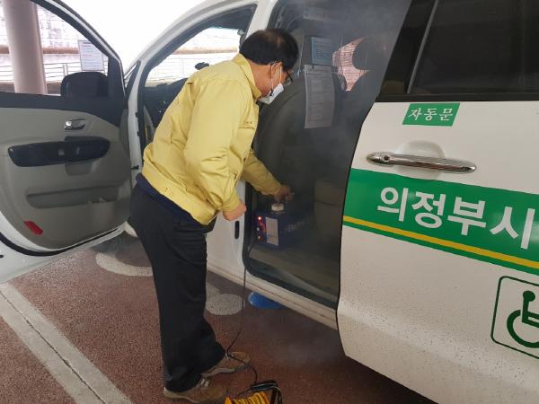 의정부시시설관리공단(이사장 임해명) 이동지원센터에서는 사회적 거리두기 완화에도 장애인 행복콜차량은 이용자의 코로나-19 예방을 위하여 철저한 소독을 실시한다고 밝혔다.
