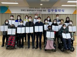 재단법인 의정부시평생학습원(원장 송원찬)에서는 2월 17일 의정부시관내 17개 장애인 기관 및 단체와 의정부시 장애인 평생학습도시 조성을 위한 업무협약을 체결했다.