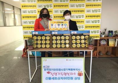 지난 17일 남양주시 평내동에 소재한 한국전기안전공사 경기북동부지사가 지역사회 소외계층을 위한 선물세트 상자(50만원 상당)를 남양주시 복지재단 산하 동부희망케어센터에 기부했다.