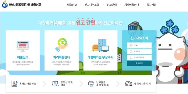 앞으로는 하남시청 홈페이지나 하남시 대형폐기물 배출신고 사이트에 접속해 온라인으로 신고하면 된다.