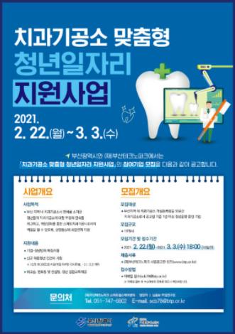 사업 추진 절차는 참여기업 선정 후 청년을 모집하여 상호 매칭하는 방식으로 진행하며 ▲참여기업은 부산지역 내 치과기공소 개설등록증을 보유한 업체들로 2월 22일부터 3월 3일까지 부산테크노파크 홈페이지 공고를 통해 신청할 수 있으며, 심사평가를 통해 19개 업체를 선정 예정이다.