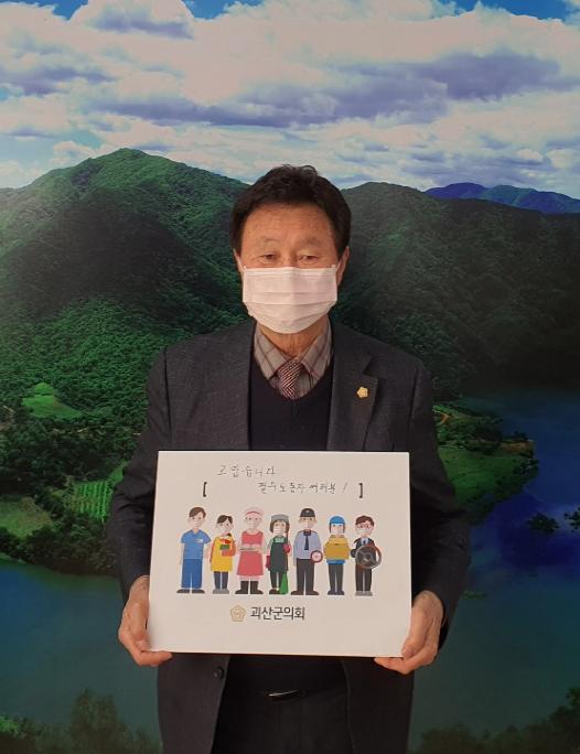 [한국쇼핑몰뉴스, 최영진기자] 신동운 괴산군의회 의장이 지난 22일 ‘고맙습니다. 필수노동자’ 캠페인에 동참했다.