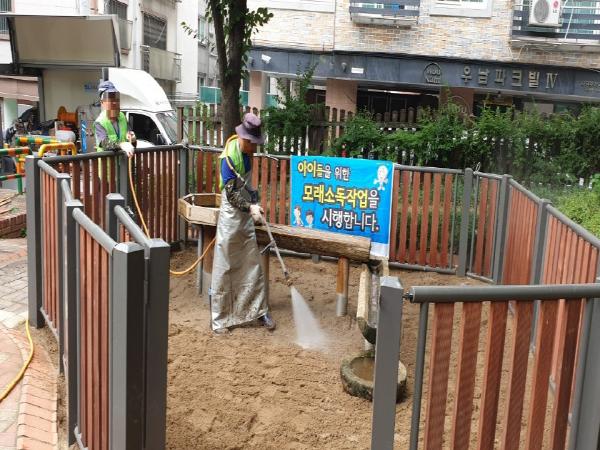 구는 지난 2019년부터 서울시 자치구 최초로 자체예산을 투입해 공동주택 내 어린이 놀이시설 모래바닥재 소독 비용을 지원하고 있다.