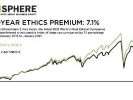 올해 세계의 가장 윤리적인 기업으로 지정 받은 상장기업의 총합 지수인 에티스피어의 2021년 윤리 지수(2021 Ethics Index)가 대형주 기업들의 지수를 지난 5년 보다 7.1퍼센티지 포인트 능가한 것으로 나타났다.