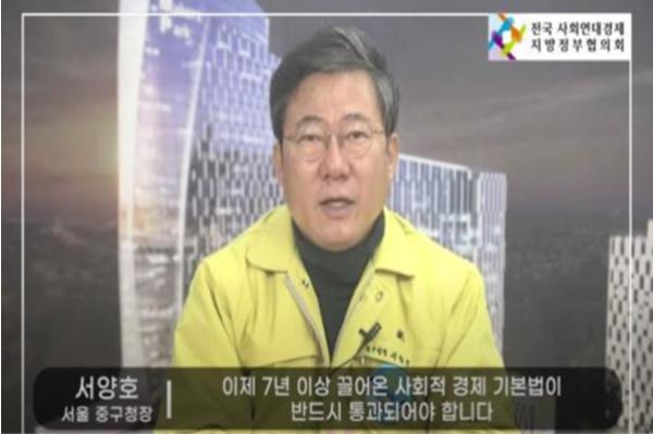 [한국쇼핑몰뉴스, 최영진기자] 서울특별시 중구 서양호 구청장은 지난 7년간 통과되지 못한 「사회적 경제 기본법」의 조속한 통과를 영상으로 촉구했다.