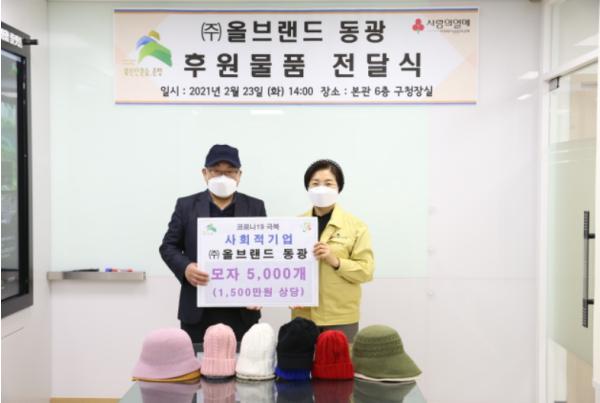 [한국쇼핑몰뉴스, 최영진기자] 서울특별시 은평구는 사회적기업 ‘(주)올브랜드 동광’으로부터 털모자 5천개를 기증받아 지역 내 취약계층이 이용할 수 있는 은평푸드뱅크마켓에 전달했다고 지난 2월 23일 밝혔다.