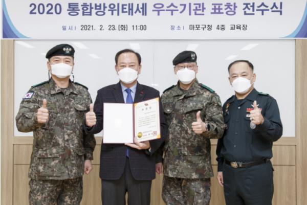 [한국쇼핑몰뉴스, 최영진기자] 서울특별시 마포구는 합동참모본부 주관 2020년 통합방위태세 우수기관평가에서 통합방위본부장(합참의장) 표창 수상 기관으로 선정되는 쾌거를 거두었다.