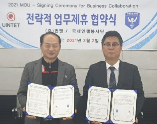 국제엔젤봉사단(총재 이고선)은 지난 2일 서울특별시시 강남구 삼섬동 아셈타워 37층 아셈타워에 위치한 피봇포인트(Pivot Point) 제우스실에서 (주)퀸텟(대표 구성진)과 콘텐츠 확산 및 상호 전문성 강화를 위한 업무협약식을 가졌다고 밝혔다.