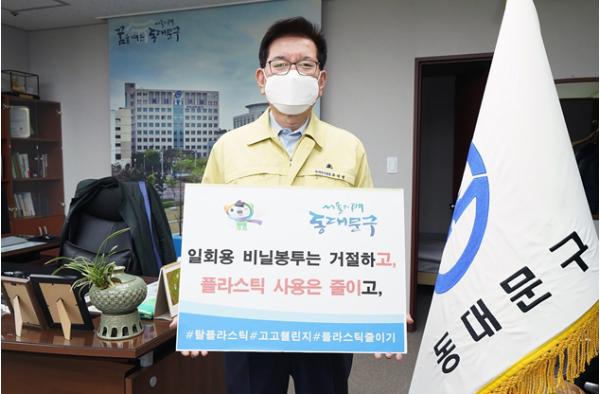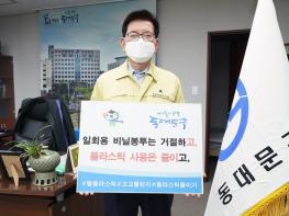 8일 유덕열 동대문구청장이 1회용품과 플라스틱을 근본적으로 줄이기 위한 생활 속 탈(脫) 플라스틱 실천을 약속하는 ‘고고챌린지’에 동참했다.