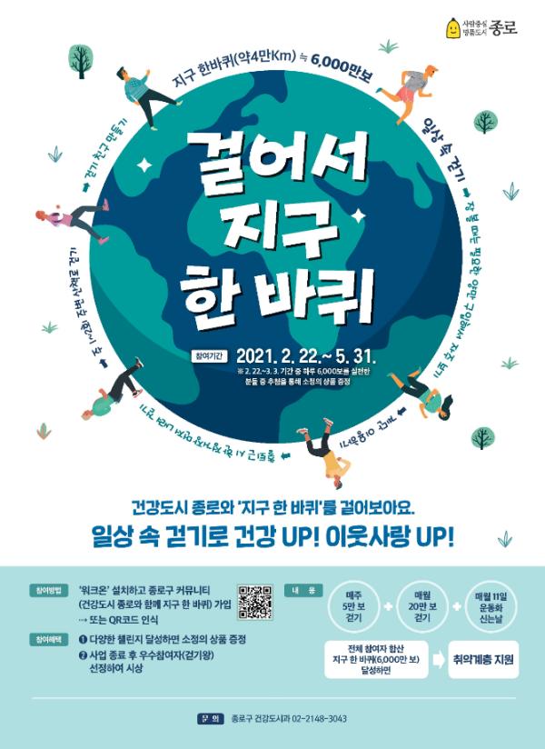 참여를 원할 시 ▲운동화 신고 만보 걷기 실천, ▲운동화 신은 모습 사진 찍기, ▲워크온 종로구 커뮤니티(건겅도시 종로와 함께 걸어서 지구한바퀴) 게시판에 50자 이내 소감과 함께 인증샷을 업로드하면 된다. 참여자 중 100명을 선정해 소정의 상품도 지급할 예정이다.