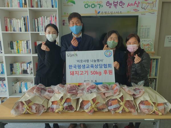 [한국쇼핑몰뉴스, 최영진기자] 한국평생교육상담협회가 3월 8일 은평구 드림스타트에 돼지고기 50kg를 전달했다.