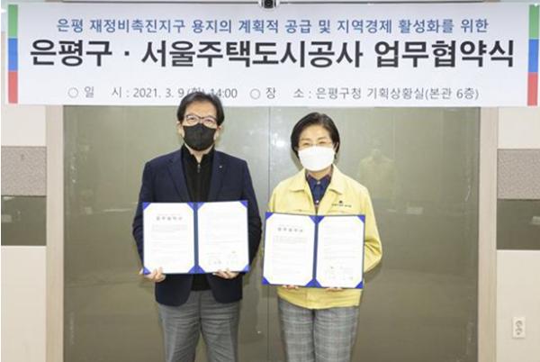 [한국쇼핑몰뉴스, 최영진기자] 은평구는 지난 3월 9일 서울주택도시공사와 은평뉴타운 미매각 용지의 계획적 공급 및 지역경제 활성화를 위한 업무협약(MOU)을 체결했다.