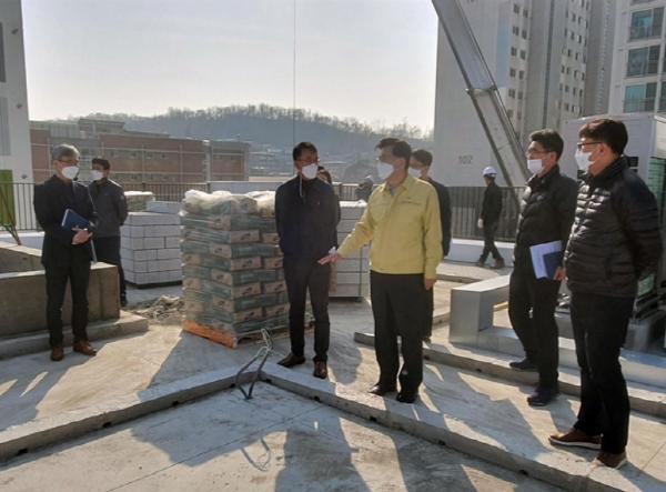 이날 유 구청장은 올해 상반기 준공을 앞둔 행복주택 마무리 공정을 점검하고 구에서 기부채납 받은 공간 활용 방안에 대해 논의했다.