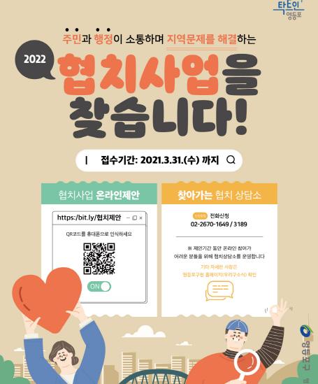 [한국쇼핑몰뉴스, 최영진기자] 영등포구가 이달 31일까지 주민과 행정이 소통하며 지역문제를 해결하기 위한 협치사업 의제제안 창구를 운영한다.