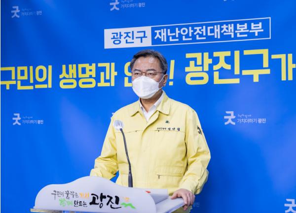 김 구청장은 “코로나 감염 발생 1년 2개월 만에 광진구 상황이 심각한 위기를 맞았다”라며 “구의동 원룸 집단감염, 지인 간 사적모임 그리고 가족 간 감염의 여파이다”라고 말문을 열었다.