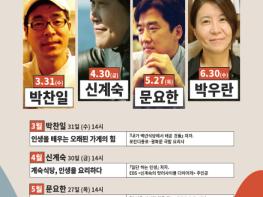 먼저 3월 31일에는 '내가 백년 식당에서 배운 것들'의 저자인 박찬일 요리사가 ‘인생을 배우는 오래된 가게의 힘’, 4월 30일에는 '일단 하는 인생'의 저자인 신계숙 배화여대 교수가 ‘계숙식당, 인생을 요리하다’란 제목으로 강의한다.