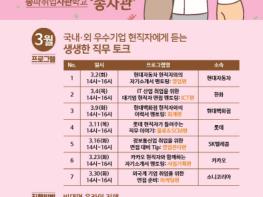 3월에는 한화, 현대백화점, 롯데, SK 등 국내 대기업 소속 현직자의 멘토링이 이어진다. 3월 18일, 25일을 제외한 매주 화요일과 목요일 2시부터 2시간 동안 진행되며 회차별 영업, ICT, 회계 등 테마에 맞춰 이력서, 자기소개 멘토링, 모의면접 대비 등이 실시된다.
