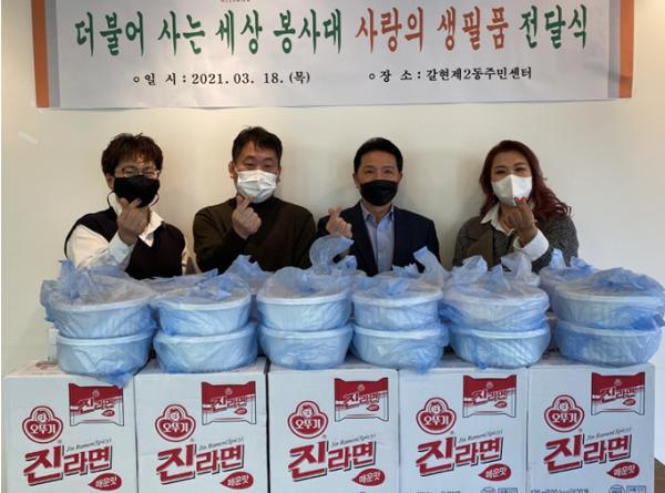 김윤식 동장은 “힘든 시기에도 따뜻한 마음을 모아 선의를 베푼 더불어사는세상 봉사대에게 진심으로 감사하다. 이 생필품은 필요한 이웃들에게 잘 전달하겠다”고 말했다.