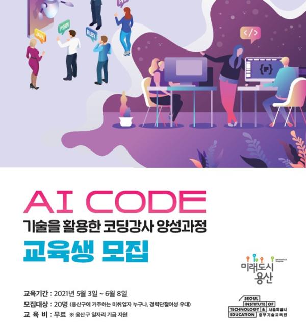 서울 용산구가 구 일자리기금 민관협력 일자리사업의 하나로 ‘인공지능(AI) 코드 기술을 활용한 코딩강사 양성과정’을 무료로 운영한다.