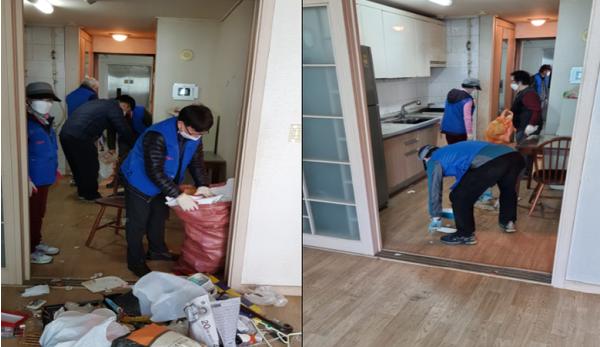 이에 평소 대상자의 어려움을 알고 있던 지역사회보장협의체 위원이 대상가구를 주민센터에 의뢰하여 직원들이 방문하였으나 처음에는 집 정리를 거부하였다. 하지만 수차례 방문하여 대상자를 설득하여 집 청소를 실시하게 되었다.