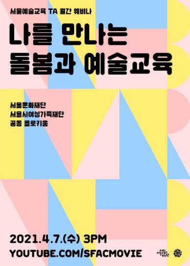 서울문화재단과 서울시여성가족재단이 공동으로 기획한 콜로키움 '나를 만나는 돌봄과 예술교육'과 '2021 지역예술교육TA 공모'에 관한 더욱 자세한 내용은 서울문화재단 누리집을 통해서 확인할 수 있다.