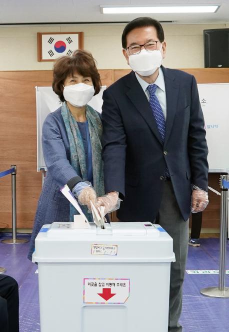 유덕열 동대문구청장, 부인 정승교 박사와 사전투표 마쳐