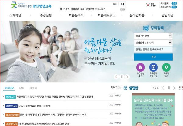 [한국쇼핑몰뉴스, 최영진기자] 광진구가 이달부터 지역 대학인 건국대학교, 세종대학교와 함께 ‘2021년 대학연계 평생학습 프로그램’을 운영한다.