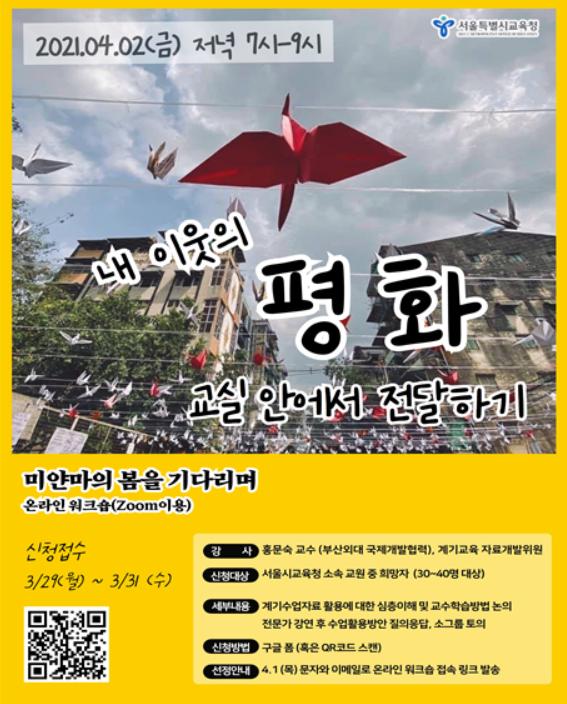 서울시교육청은 미얀마 계기수업을 통해 학생들이 ‘내 이웃의 평화를 지키는 일이 곧 나의 평화를 지키는 일’이라는 점을 인식하고 비판적 관점에서 시민운동의 다층성에 대해 이해함으로써 개인의 실천이 사회 전체에 어떤 영향을 줄 수 있는지에 대해 깊이 있는 학습을 할 수 있을 것으로 기대한다.