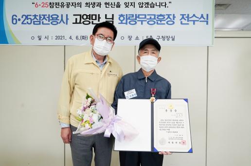 [한국쇼핑몰뉴스, 최영진기자] 동대문구는 6일 구청 5층 구청장실에서 6․25 참전용사인 고영만(89) 하사에게 국방부장관을 대신해 화랑무공훈장과 훈장증을 전달했다.
