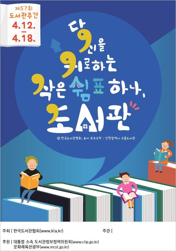 이번 제57회 도서관주간의 메인 테마는 ‘당신을 위로하는 작은 쉼표 하나, 도서관’이다. 도봉구도 4월 한 달간 코로나19로 지친 구민들을 위해 마음의 쉼표가 될 수 있을 힐링 독서문화 프로그램들을 선보인다.