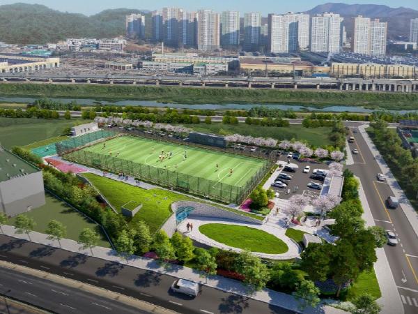 지상에는 축구장˙족구장 등 생활체육시설을 조성하여 지역주민과 함께하는 친환경적인 “생활SOC복합센터”로 건축할 예정이다.