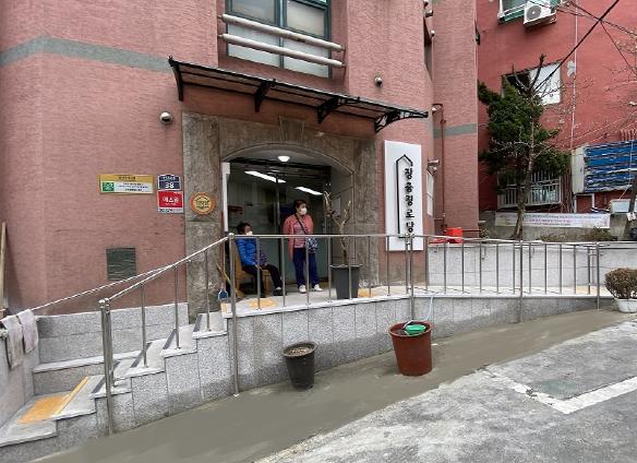 사전 이용 어르신의 의견을 적극 수렴하여 진행된 이번 사업은 기존의 계단만 있던 주출입구에 경사로와 안전손잡이를 설치하여 휠체어나 보행보조기를 이용하기에 더욱 안전하게 바꾸었고, 입구에 캐노피와 자동문 설치로 어르신들의 출입이 훨씬 편리해졌다.