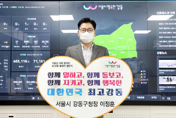 이정훈 강동구청장은 “구는 저출산 극복을 위한 다양한 노력을 기울이고 있다.”며, “앞으로도 아이를 낳고 키우기 좋은 환경 조성을 위해 최선을 다하겠다.”고 밝혔다.