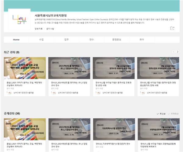 2020학년도에는 개인정보 및 저작권을 고려하여, 회원가입 후 해당 강좌를 수강신청하면 승인된 회원(교사)에 한해 「남부초등더함」 플랫폼 자료/강좌를 수강할 수 있도록 하였다. 그러나 자료 이용의 편의성과 즉시성을 고려하여, 2021학년도에는 인증된 회원이면 「남부초등더함」에서 수강신청 즉시 수강할 수 있도록 개편하였다. 또한, 서울혁신미래교육 역량 신장을 위한 초등 교실혁신 정책, “꿈잼”과 “꿈실”활성화 및 내실화를 위하여 기존의 수업/업무/연수 카테고리에 ‘꿈잼꿈실’을 추가하였다.