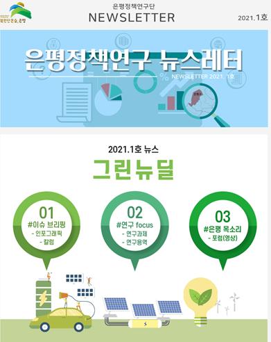 특히 이번 2021. 1호에는 그린뉴딜의 주제로 은평의 그린뉴딜 사업 인포그래픽, 전문가 칼럼, 이슈관련 자료로 구성된 “이슈브리핑”부터, 정책연구단의 ‘대기오염 관리 도입방안 연구’ 및 은평에서 진행한 연구용역 소개가 담긴 “연구 focus”, 포럼 영상, 주민의 목소리를 듣는 “은평목소리” 등이 실렸다.