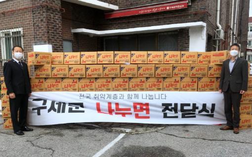 구세군 아현교회는 매년 관내 취약계층 주민들에게 장학금과 생필품키트 등을 지속적으로 후원하며 이웃돕기를 실천해 왔으며 이번에도 ‘사랑의 나누면’ 사업을 통해 라면을 기부했다.