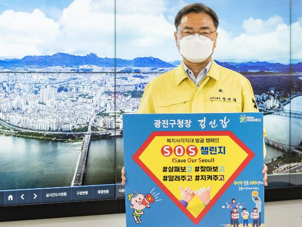 [한국쇼핑몰뉴스, 최영진기자] 김선갑 광진구청장이 20일 복지 사각지대에 놓인 이웃에 대한 관심과 공감대 형성을 위해 ‘SOS 릴레이 챌린지’에 동참했다.