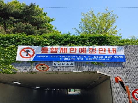 이에 구는 통행제한을 알리는 현수막, 안내판을 사전 제작해 게첨하고, 영등포 경찰서의 교통안내 협조를 받아 출․퇴근 혼잡시간을 피해 실시하는 등 구민 불편을 최소화하며 진행할 방침이다.