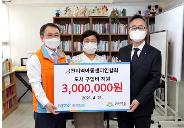 [한국쇼핑몰뉴스, 최영진기자] 금천구는 4월 21일 한국거래소 산하 복지재단 ‘KRX 국민행복재단’에서 금천구 지역아동센터에 ‘아동 도서 구입비 지원금’현금 3백만 원을 기부했다고 밝혔다.